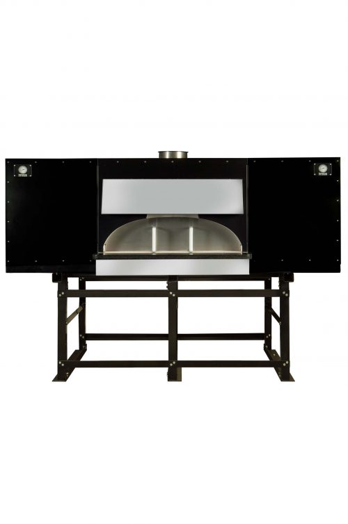 Exterior Diameter: 48¼" x 44¼" Height: 72" Weight: 2,500 lbs. Interior Diameter: 35" Oven Entrance Opening: 20"W x 9½"H Clearance to Combustible Sidewalls: 1" Trim Options: (Rollover to see options) Stainless steel and black enclosure with perforated panel All black enclosure with copper trim and stainless storage box All black enclosure with stainless trim and storage box Pizza Capacities:- 8" Pizzas: 3-4